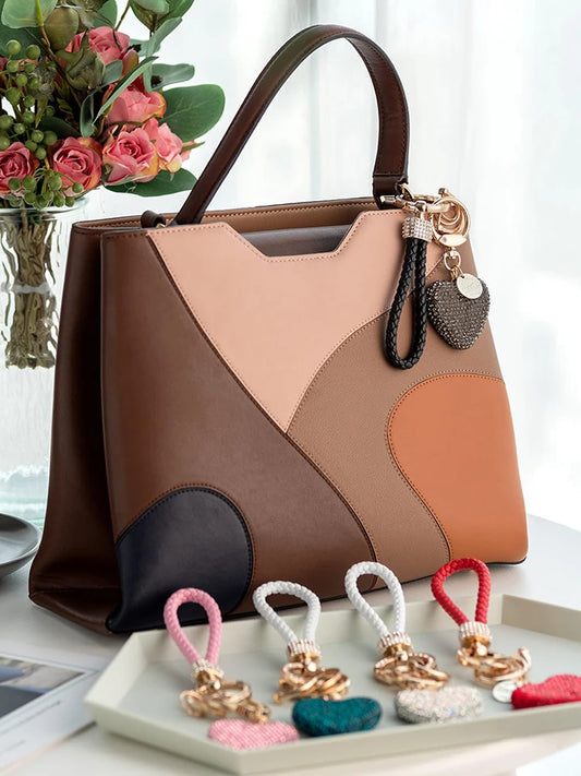 Sweet Heart Diamond Inlay Leather Rope Key Chain For Backpacks 👜💎🎀