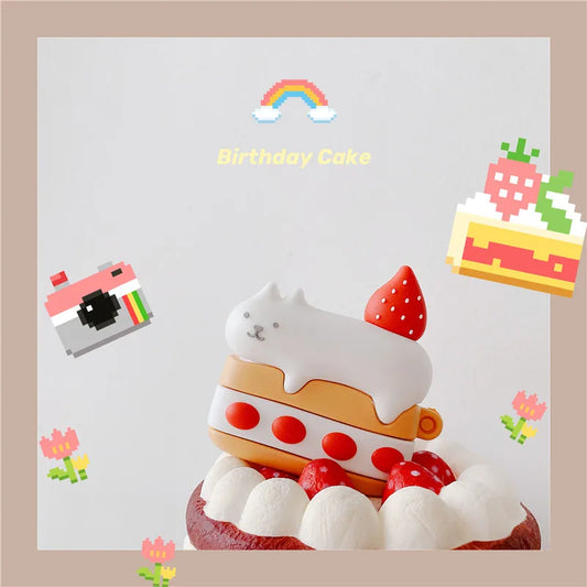 Kawaii 3D Strawberry Cake Bear Silicone Case 🍰🐻 for Apple AirPods 2/3/Pro - Cute Earphone Cover! 🎧✨