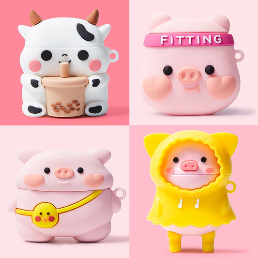 🎉✨ Adorable 3D Pig & Cow Silicone Case for AirPods Pro 🐷🐮 - Cute & Protective Earphone Cover! 🎧💖