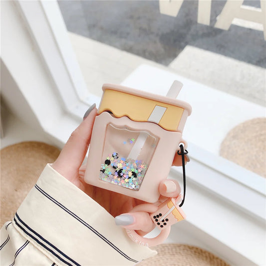 Kawaii Quicksand Glitter Bubble Milk Tea AirPods Pro Case 🌟🍵 | Cute 3D Silicone Cover for Wireless Earphones 🎧✨