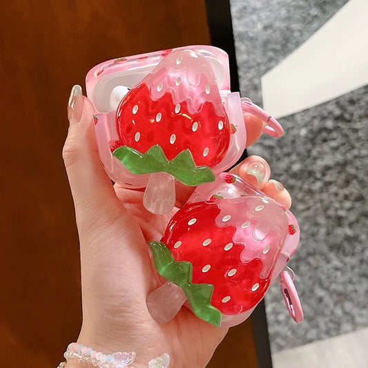 Kawaii Strawberry Dreams 🍓✨ Cute Red Polka Dot AirPods Case with Charm Pendant - Shockproof & Stylish! 🎧💕