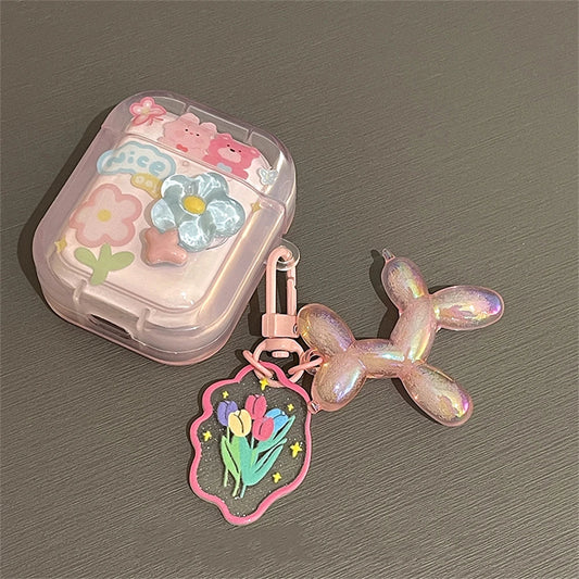 🌸Adorable 3D Blue Blossom Headphone Case for AirPods 🎧💖 with Cute Dog Tulip Charm! 🌼