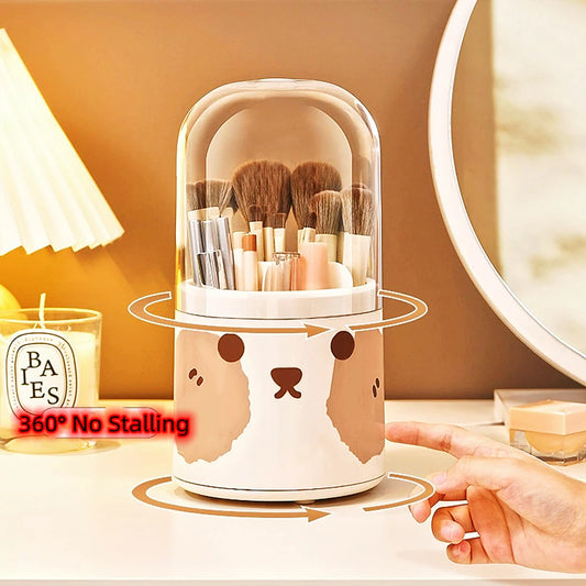 Adorable 360Β° Rotating Bear Makeup Brush Holder π»π - Cute Cosmetic Organizer with Lid for Brushes, Lipsticks & More! πβ¨