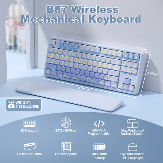 Cute Kawaii Wireless RGB Mechanical Keyboard 🐻✨ | YUNZII B87 with Gasket Mount, Hot Swappable Switches & Soft Wrist Rest! 🎮💖