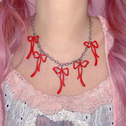 Adorable Bowknot Bling β¨π Pink Punk Choker Necklace for Trendy Girls! πβ¨