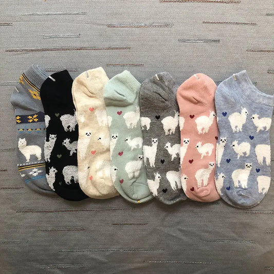 Kawaii Alpaca Love Heart Ankle Socks π¦β€οΈ | Cozy Cotton Animal Print for Ultimate Comfort! π§¦β¨