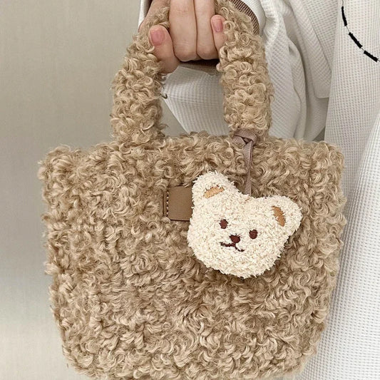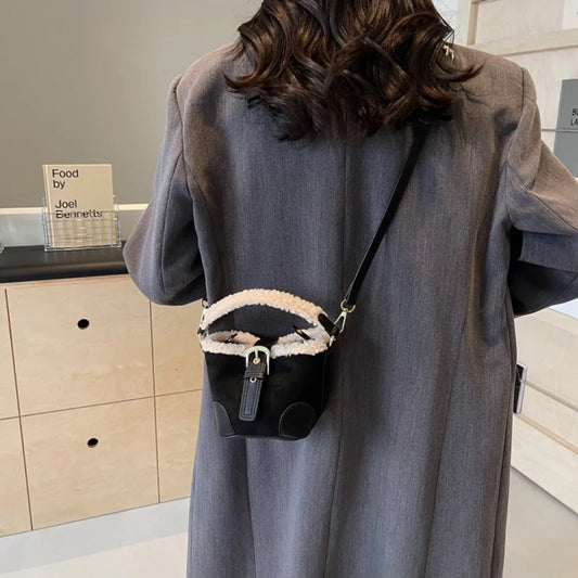 Kawaii Lamb Wool Bucket Bag πβ¨ | Vintage Plush Crossbody Bag for Women ππ