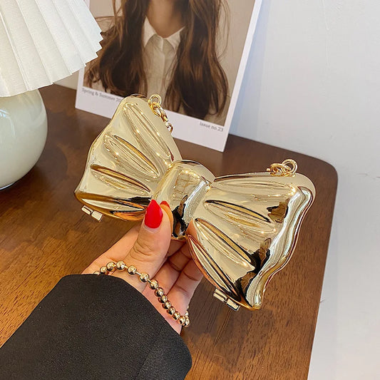 Kawaii Metallic Mini Bow Crossbody Bag 🎀✨ – Cute Shoulder Clutch for Women | Stylish Lipstick & Coin Purse in Silver & Gold! 🌈💖