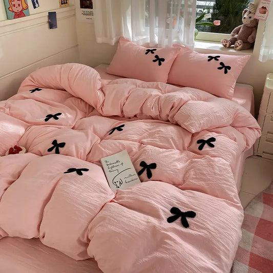 Kawaii Princess Bowknot Pink Bedding Set 🛌💕 | Cozy Duvet Cover & Sheet for Girls 🌸 | Cute Cotton Bed Linens 🦄✨