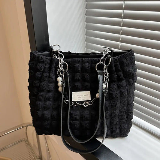 Kawaii Quilted Plaid Tote Bag 🎀✨ - Chic Soft Fabric Shoulder Purse for Stylish Ladies 💖