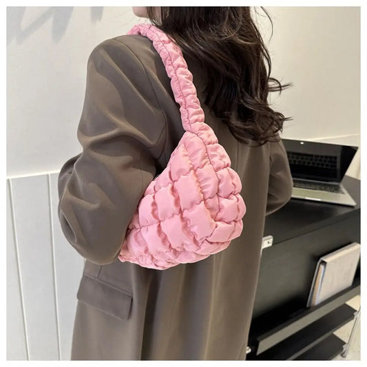 Kawaii Quilted Plaid Shoulder Bag 🌈✨ | Lightweight & Cute Underarm Tote for Girls 👜💕