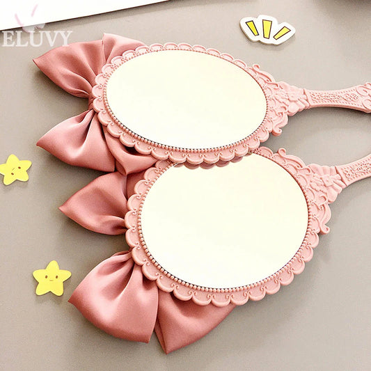 Kawaii Vintage Pink Makeup Mirror ✨🎀 Cute Bow Design, Portable Oval Round Beauty Tool 💖