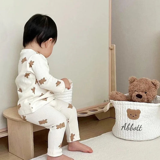 Personalized Kawaii Bear Storage Basket π»β¨ | Cute Canvas Toy Organizer π | Perfect Baby Shower Gift ππ