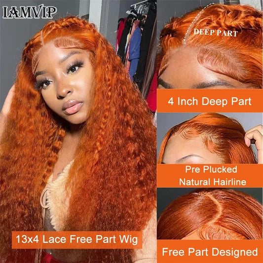Kawaii Orange Ginger Curly Lace Front Wig πβ¨ | Glueless Deep Wave 13x4 & 13x6 HD Lace Frontal π | Soft & Bouncy Human Hair Wig π¦