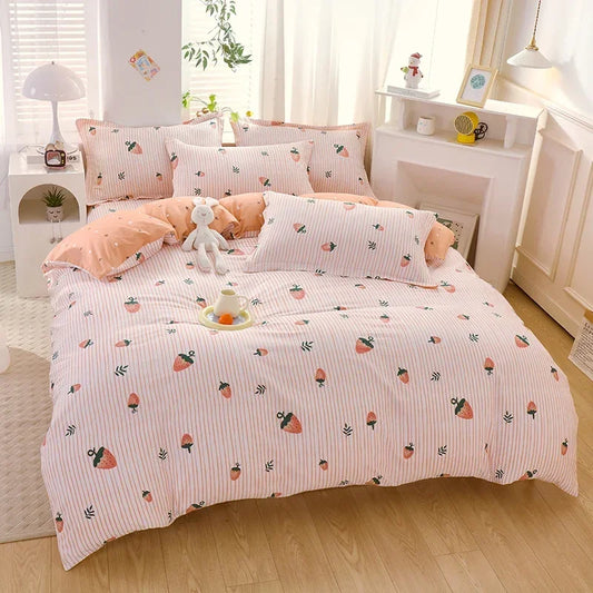 Adorable Strawberry Dreams Reversible Kawaii Bedding Set πβ¨ Soft Cotton Duvet Cover with Pillowcases