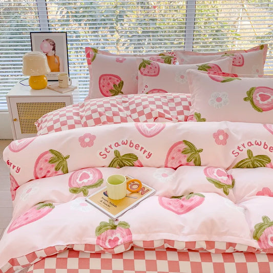 Charming Strawberry Dreamland Duvet Set πβ¨ Cozy Kawaii Bedding for Sweet Sleep!