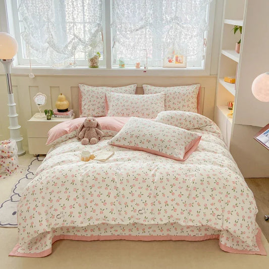 Kawaii Princess Dreamland Bedding Set with Lace & Bowknot Accents πΈβ¨