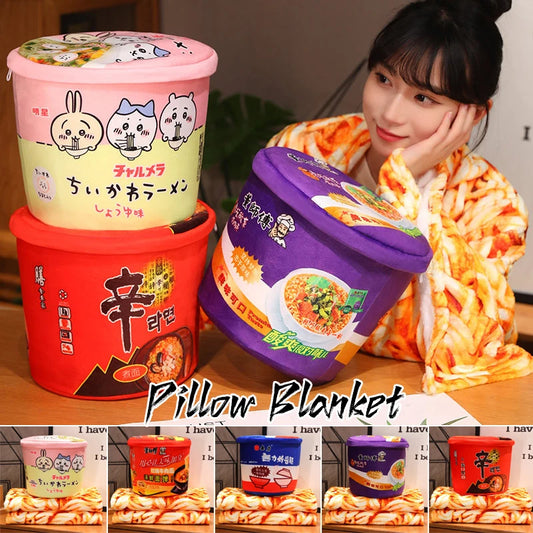 Kawaii Instant Noodle Plush Blanket πβ¨ - Adorable Ramen Pillow & Storage Bucket for Cozy Naps! ππ