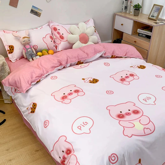Kawaii Piggy Dreams Bedding Set π·π Cozy Microfiber Duvet Cover & Pillowcases for Sweet Slumbers! πβ¨