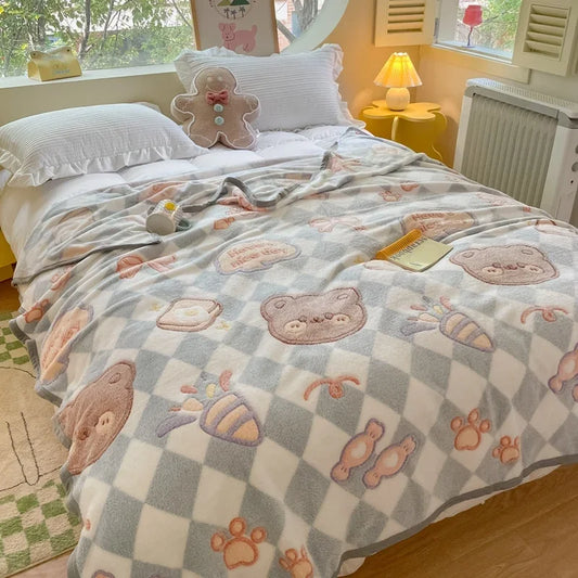 YanYangTian 2024 New Thin blanket sofa cover bedding Cute puppy print Autumn Winter warm comforter Home and decoration