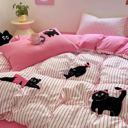 Kawaii Cat Dreamland Bedding Set π±π Cozy Duvet, Sheets & Pillowcases for Happy Sleep! πβ¨