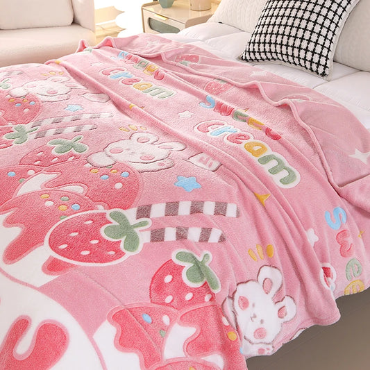 Cute Strawberry Dreams πβ¨ Cozy Flannel Blanket for Kids - Perfect for Cuddles & Adventures! πποΈ