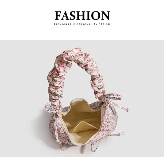 Kawaii Floral Canvas Rouched Handbag with Bow DecorationπΈβ¨