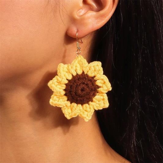 Kawaii Handmade Sunflower Drop Earrings πΌβ¨ | Cute Knitted Dangle Hooks for Party & Holiday Gifts ππ