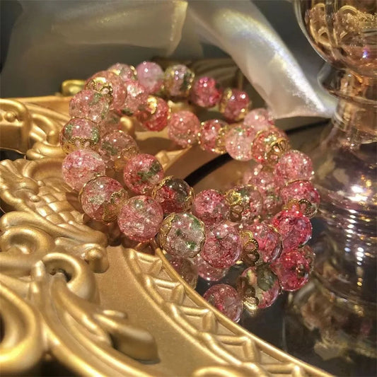 🌸 Kawaii Cherry Blossom Crystal Bracelet 🌸 | Elegant Beaded Charm Jewelry for Girls 💖✨