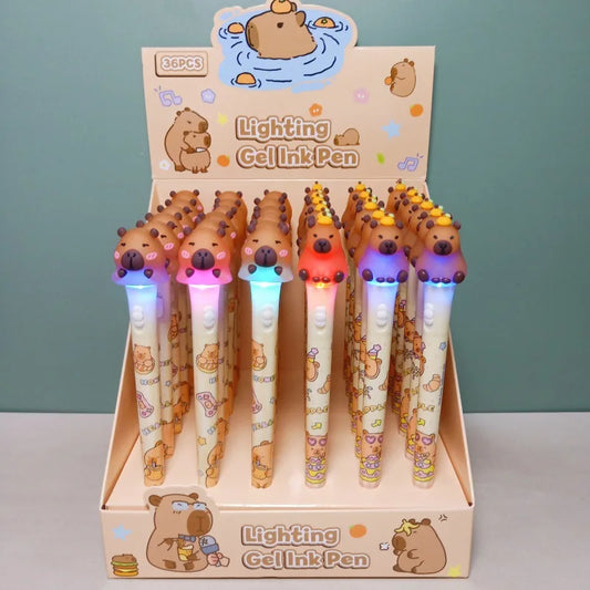 Kawaii Capybara Glow Gel Pen Set ✨🐾 | 0.5mm Black Ink | Cute Stationery for Kids & Office Supplies 🎨✏️
