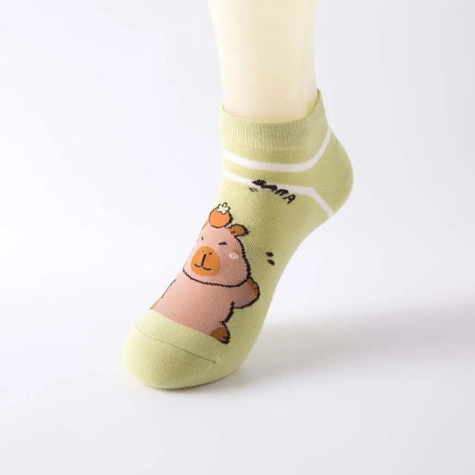 Kawaii Capybara Cotton Ankle Socks 🐾✨ Fun Summer Hosiery for Women - 5 Pairs!