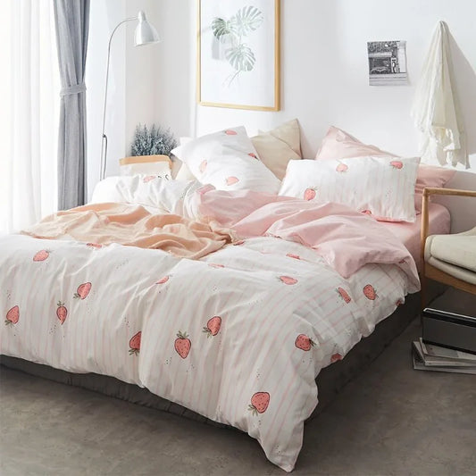 Kawaii Strawberry Dreams Duvet Cover Set - Adorable 3-Piece Cotton Bedding for Cozy Comfort πβ¨