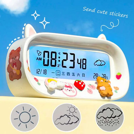 Kawaii Digital Alarm Clock 🌟 | Adorable Timekeeper with Fun Stickers 🎀 | Perfect for Students & Room Decor 💖