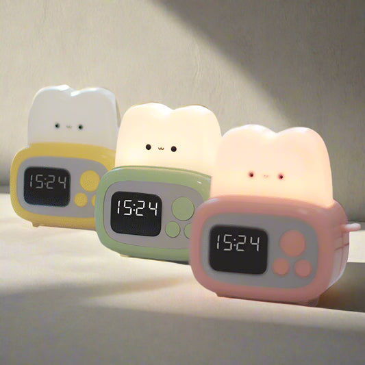 Kawaii LED Toaster Alarm Clock 🍞⏰ - Cute Cartoon Night Light with Timer Function for Whimsical Bedside Decor ✨🌙