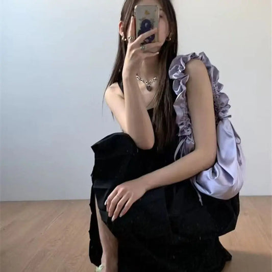 Charming Kawaii Silk Satin Pleated Crossbody Bag 🌸✨ - Perfect for Parties & Playful Outings! 🎉👜