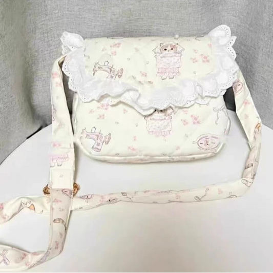 ✨ Kawaii Lolita Bow & Lace Crossbody Bag 🎀 | Pearl-Embellished Japanese Style Purse for Trendy Girls 🌸
