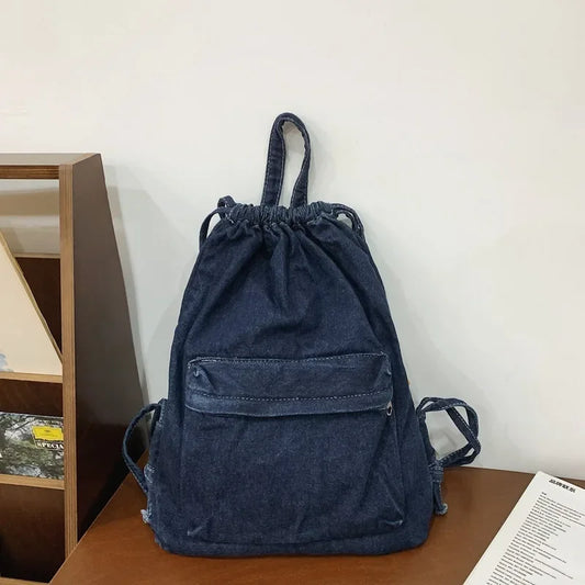 Kawaii Denim Dreamer ππΌ - Retro Drawstring Canvas Backpack for Fun-Filled Travels πβ¨