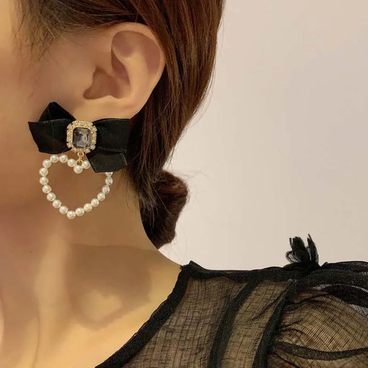 Kawaii Retro Rhinestone Bow Heart Clip-On Earrings ππ