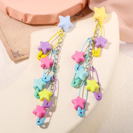 Kawaii Acrylic Pentagram Beaded Earrings πβ¨ - Colorful Japanese Whimsy for Every Day!