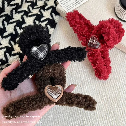 Kawaii Heart Plush Hair Claw Clip 💖 - Adorable Hair Accessory for Long Hair, Perfect for Women & Girls 🌟✨