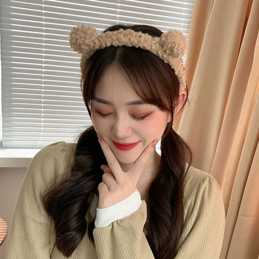 Kawaii Plush Bear Hairband 🐻💕 | Cute Anti-Slip Headband for Women | Adorable Face Wash Accessory 🎀✨
