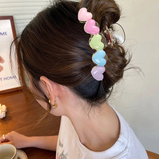 🌸✨ Adorable Love Rainbow Hair Claw Clip - Chic Ponytail Holder for Stylish Ladies! 💖🦋