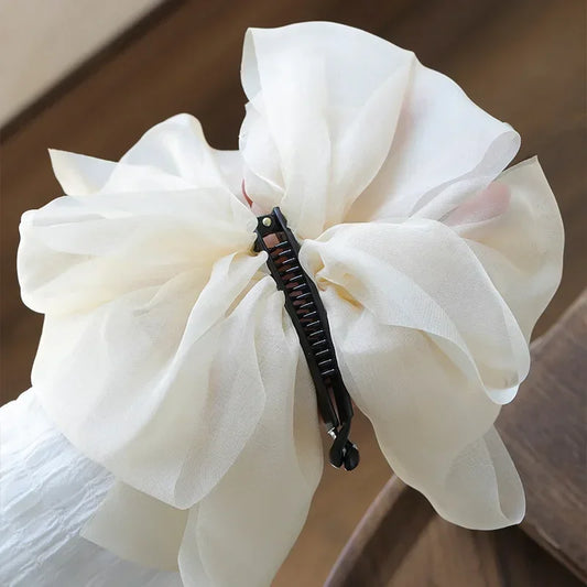 Charming Chiffon Bow Banana Clip 🎀✨ for High Ponytails – Vintage Style Hair Accessory 🐒🌸