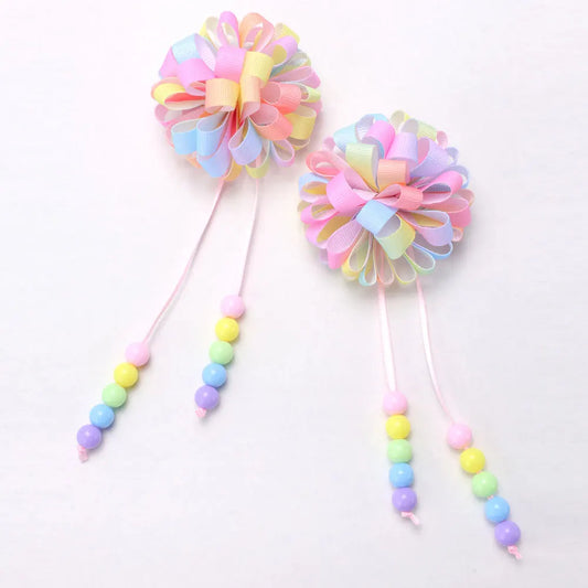 🌸✨ Adorable Flower Hair Clips Set for Girls 🌷💖 Bead & Tassel Delight! 🎀💫