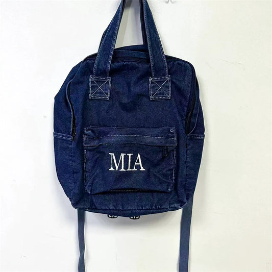Kawaii Denim Delight πβ¨ Personalized Backpack for Kids & Adults - Adorable Custom Embroidered Name Schoolbag! ππ
