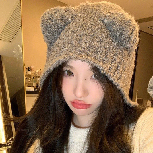 Kawaii Bear Ears Knitted Beanie π»β¨ - Adorable Winter Hat for Trendy Girls!