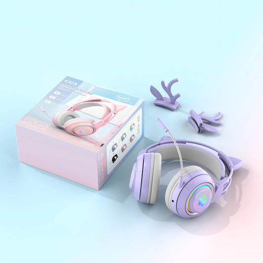 Kawaii Cat Ear Bluetooth Headphones π§β¨ - Cute Antlers Gaming Headset with RGB Lights for Kids πΎπ¦
