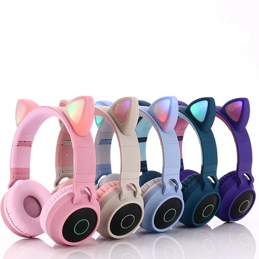 Kawaii Cat Ear Bluetooth Headphones 🎧💖 LED Light-Up Earphones with Mic for Girls & Kids - Perfect Gift! 🎁✨
