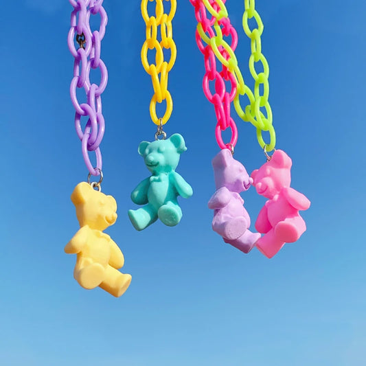Kawaii Rainbow Bear Pendant Necklace for Women 🌈✨ | DIY Egirl Jewelry | Trendy Y2K Aesthetic Accessories 🎉🐻