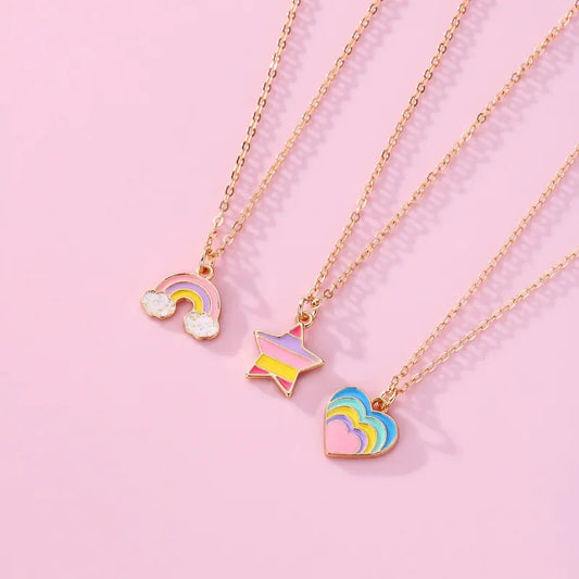 Kawaii 3Pcs Rainbow Star & Heart Necklace Set 🌈💖 for BFFs – Trendy Gifts for Girls!